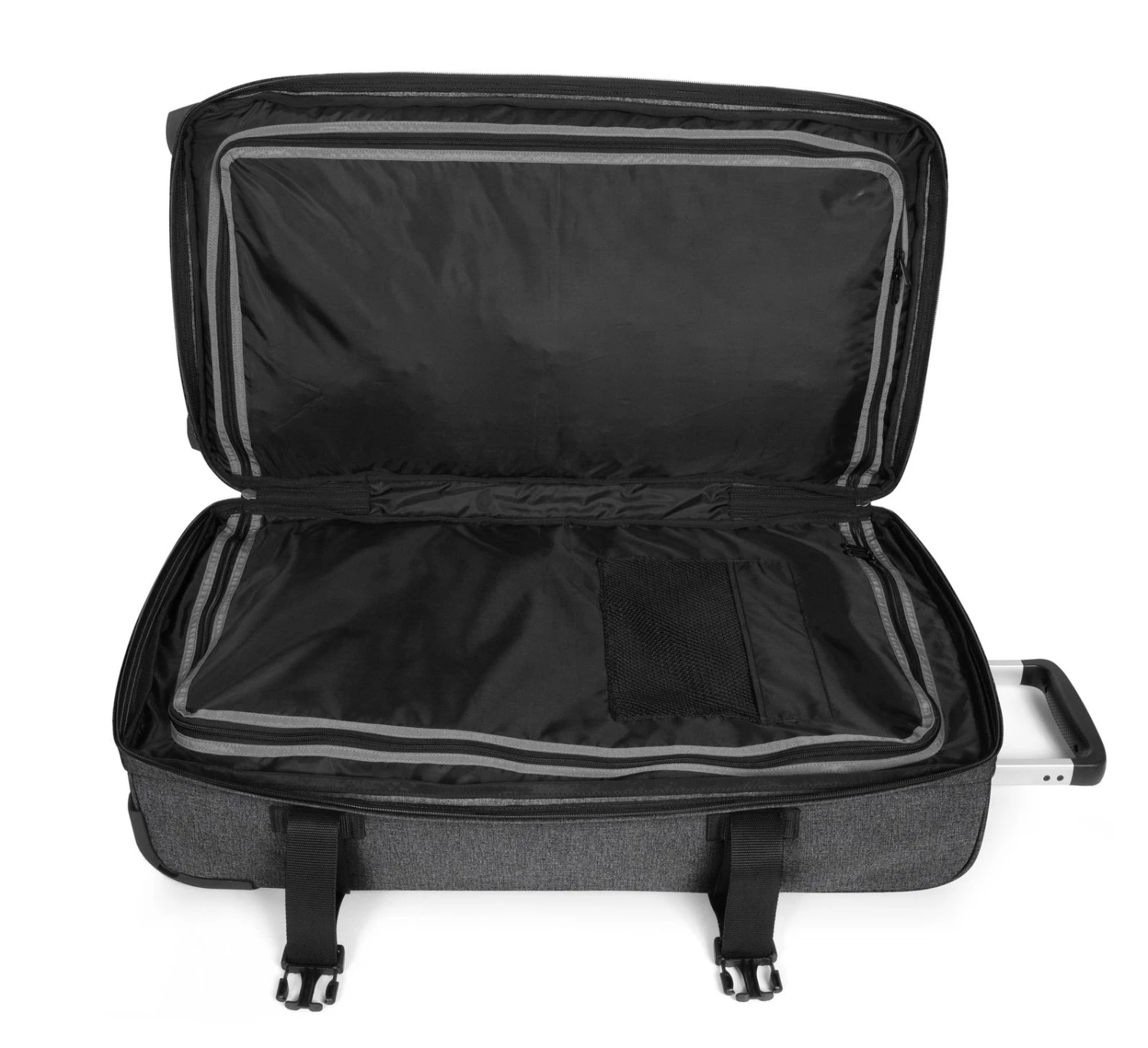 Die Reise beginnt schon beim Packen des Koffers und schon hier nimmt der EASTPAK Trolley jede Art von Stress. Durch die weite Öffnung können Sie Ihre Kleidung geschickt in dem Hauptfach aufbewahren. Zwei Trennwände, die mit Zipper geöffnet werden können, unterteilen das Hauptfach in zwei Fächer. Die EASTPAK Transit’R Trolley M Trolley ist mit einem TSA Schloss ausgestattet, welches vor allem für eine Reise in die USA sehr praktisch ist.