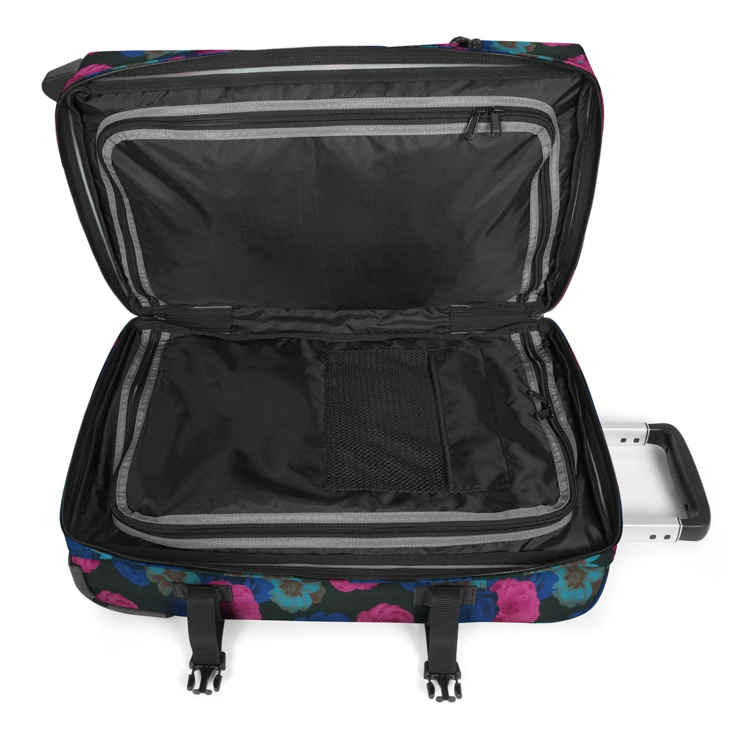 - Außerdem im rechten Hauptfach 1 Trennwand, in dem sich 2 Kompressionsriemen mit Clipverschluss befinden
